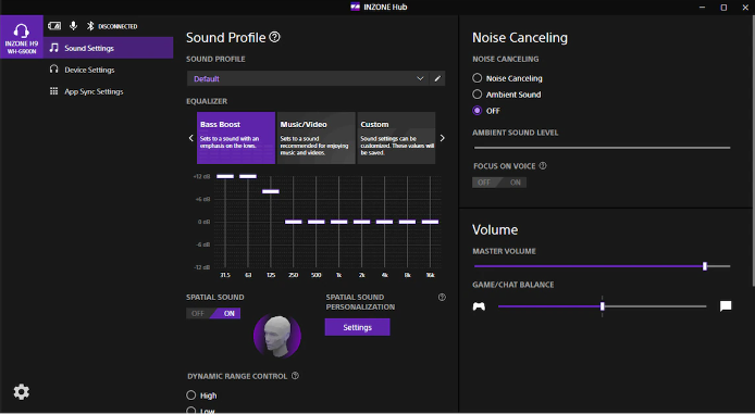 Software-ul pentru PC INZONE Hub va permite sa personalizati experienta INZONE H9 prin ajustarea unei game largi de operatiuni, inclusiv o varietate de setari hardware si de sunet. Reglati fin frecventele de sunet in functie de joc pentru o experienta mai clara si mai captivanta utilizand functia de egalizator.
